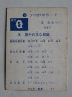 トップ > カルビープロ野球カード > 73年 > No.1〜99 > 73009 カルビープロ野球カード 1973年 No.9 巨人 王貞治 旗版 並下品