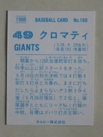 トップ > カルビープロ野球カード > 88年 > 88160 カルビープロ野球カード 1988年 No.160 巨人 クロマティ B 並品