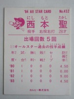 カルビープロ野球カード 1984年 No.452 巨人 西本聖 オールスター特集