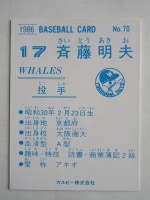 トップ > カルビープロ野球カード > 86年 > 86070 カルビープロ野球カード 1986年 No.70 大洋 斉藤明雄 美下品
