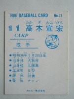 トップ > カルビープロ野球カード > 86年 > 86071 カルビープロ野球カード 1986年 No.71 広島 高木宣宏 並〜並上品