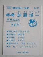 トップ > カルビープロ野球カード > 86年 > 86075 カルビープロ野球カード 1986年 No.75 大洋 加藤博一 並下品