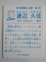 トップ > カルビープロ野球カード > 86年 > 86122 カルビープロ野球カード 1986年 No.122 西武 渡辺久信 並下品