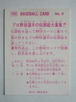 トップ > カルビープロ野球カード > 85年 > 85006 カルビープロ野球カード 1985年 No.6 阪神 掛布雅之 並上品