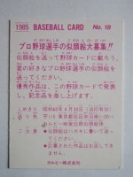 トップ > カルビープロ野球カード > 85年 > 85018 カルビープロ野球カード 1985年 No.18 阪神 佐野仙好 並下品