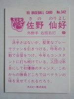トップ > カルビープロ野球カード > 85年 > 85342 カルビープロ野球カード 1985年 No.342 阪神 佐野仙好 美下品