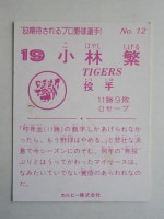 トップ > カルビープロ野球カード > 83年 > 83012 カルビープロ野球カード 1983年 No.12 阪神 小林繁 並下品