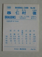 トップ > カルビープロ野球カード > 89年 > 89040 カルビープロ野球カード 1989年 No.40 中日 仁村徹 美下品