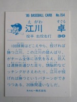 トップ > カルビープロ野球カード > 86年 > 86154 カルビープロ野球カード 1986年 No.154 巨人 江川卓 並上品
