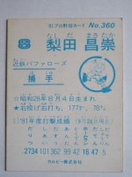トップ > カルビープロ野球カード > 81年 > 81360 カルビープロ野球カード 1981年 No.360 近鉄 梨田昌崇 並下品