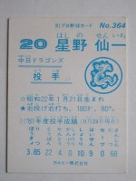 トップ > カルビープロ野球カード > 81年 > 81364 カルビープロ野球カード 1981年 No.364 中日 星野仙一 並上品