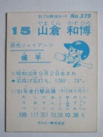 トップ > カルビープロ野球カード > 81年 > 81379 カルビープロ野球カード 1981年 No.379 巨人 山倉和博 並品