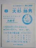 トップ > カルビープロ野球カード > 81年 > 81388 カルビープロ野球カード 1981年 No.388 ヤクルト 大杉勝男 並下品