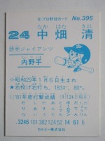 トップ > カルビープロ野球カード > 81年 > 81395 カルビープロ野球カード 1981年 No.395 巨人 中畑清 並上品