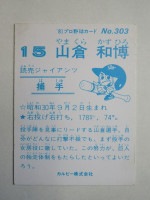 トップ > カルビープロ野球カード > 81年 > 81303 カルビープロ野球カード 1981年 No.303 巨人 山倉和博 並品