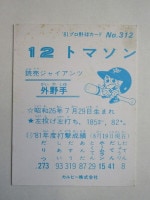 トップ > カルビープロ野球カード > 81年 > 81312 カルビープロ野球カード 1981年 No.312 巨人 トマソン 並下品